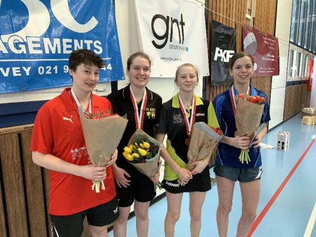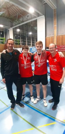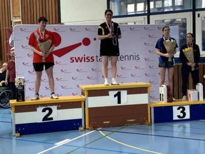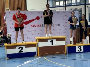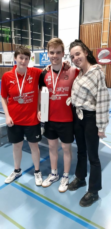 En double messieurs nous avons trois paires sur le podiums: Yoan et Simon (Fribourg) à la deuxième place, Loïc et Dorian, ainsi que Yanick et Filip Karin (Neuhausen) à la troisième. A noter que Salim et Abishek n’ont pas réussi à convertir leurs balles de match face aux frères Vepa (Chaitanya et Siddharth).
